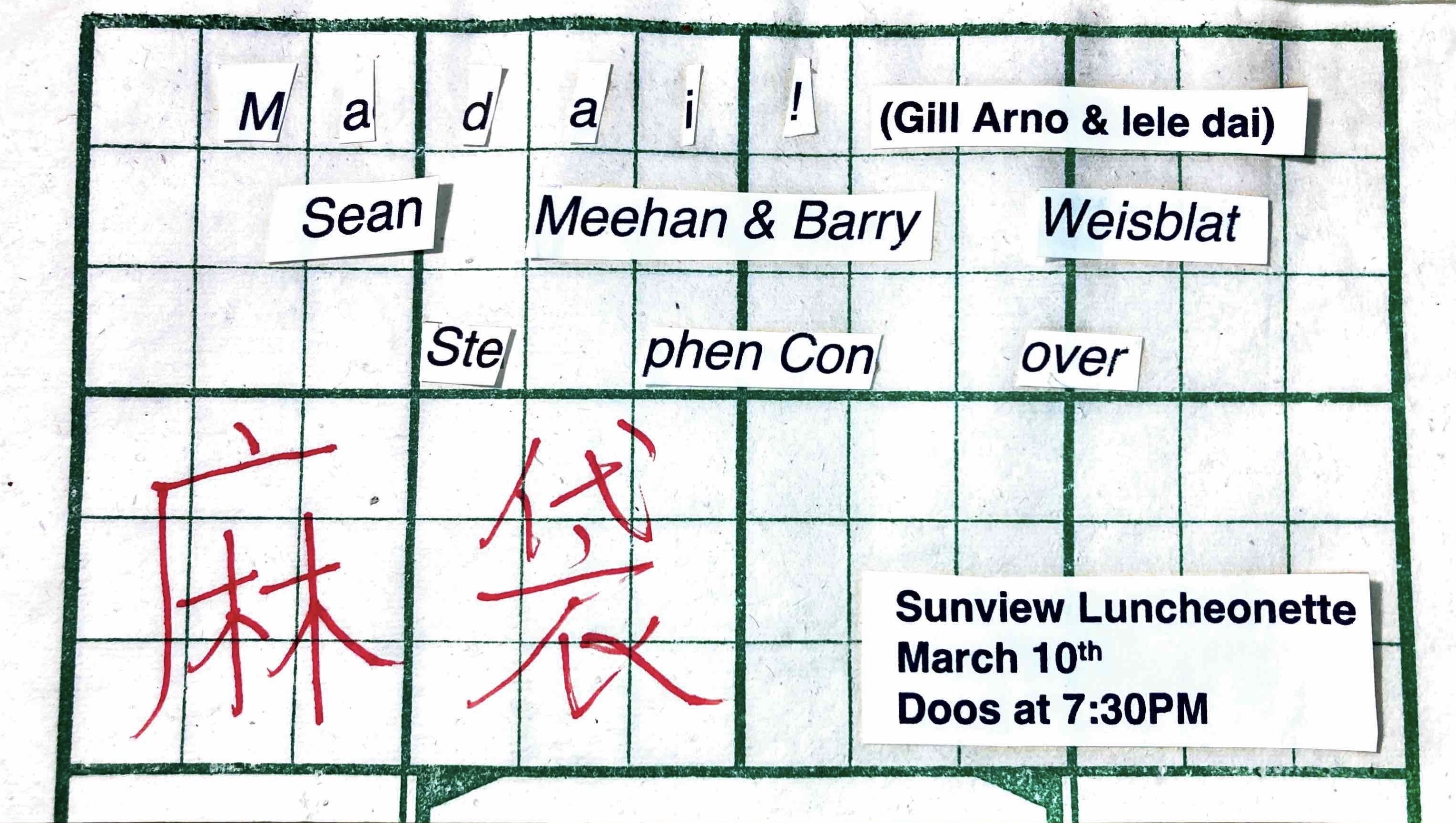 I will not be performing alone (apologize for the poster still under the name lullady), but with two of my favorite collaborators, Jin Kim and the impossibleless Bradley Eros~ our new non-band no-name will be (目).